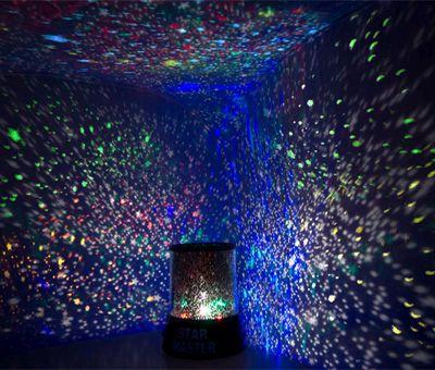 Teremts nyugodt, biztonságos hangulatot a gyerekszobában a mennyezetre és a falakra vetített csillagos égbolttal.