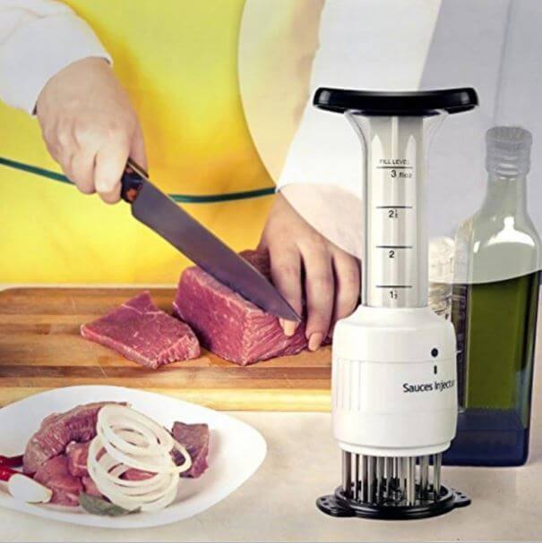 Nagyon praktikus, hasznos eszköz, melynek segítségével könnyedén be tudjuk fecskendezni a páclevet a húsba, a hús rostjai közé.